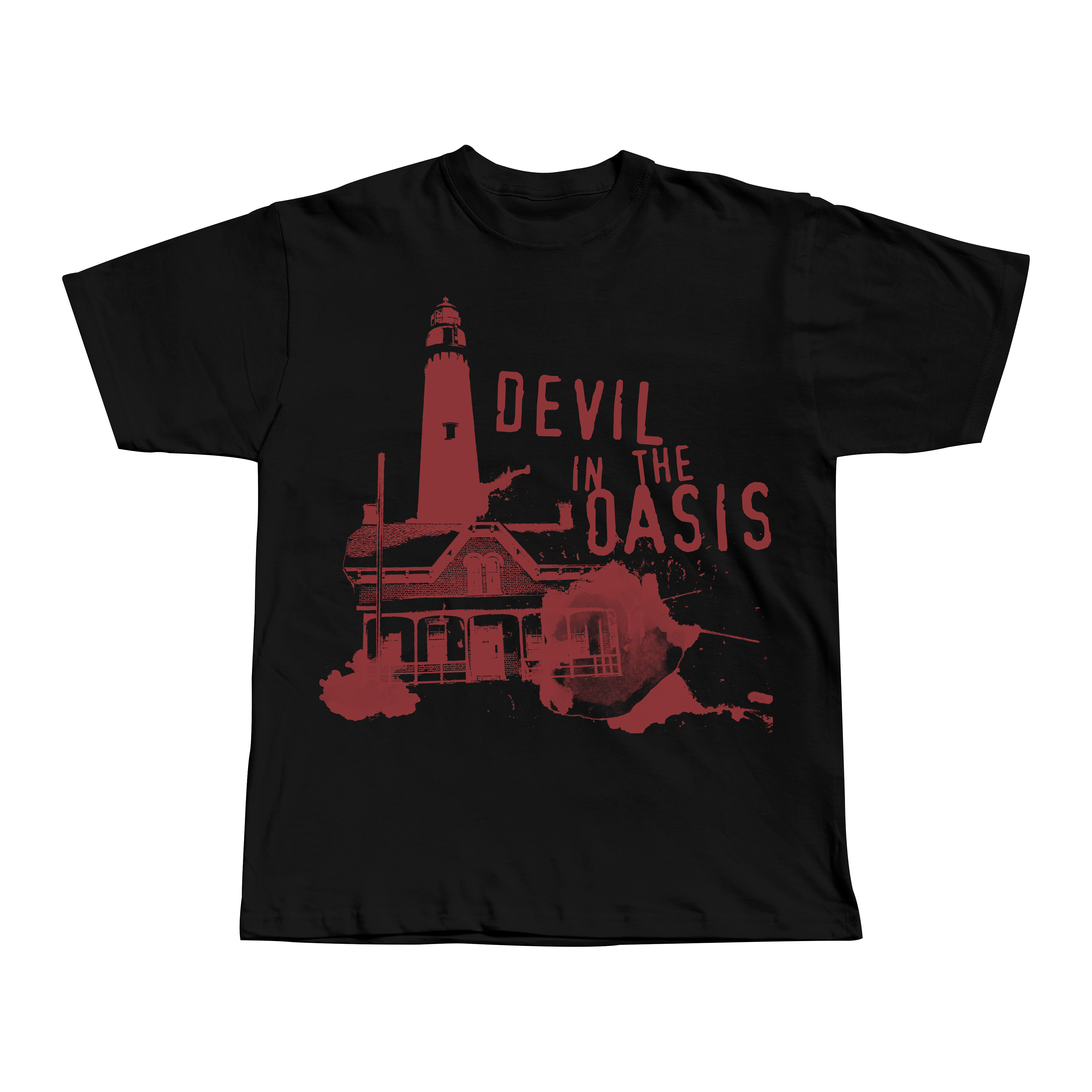 shirt design for devil in the oasis featuring the lighthouse from their hometown of brunswick, ga
